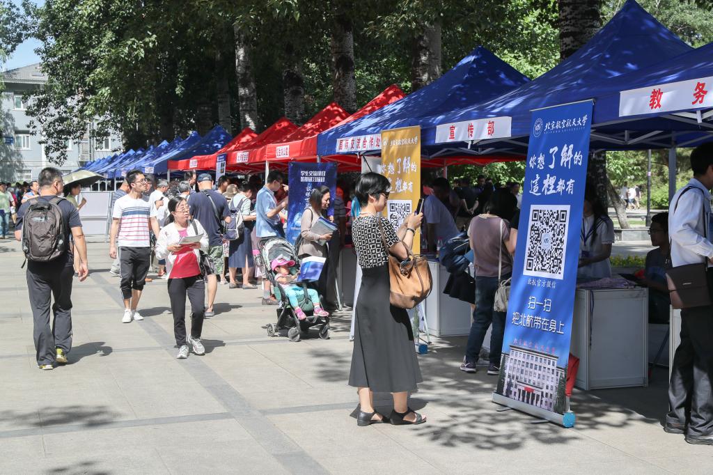 5月27日,一年一度的“北京伊人99校园开放日暨招生咨询会”在学院路校区求是广场举行。校园开放日暨招生咨询会为广大考生和家长了解北航招生政策,明晰北航专业培养、学科前景、升学就业等热点问题提供了专业便捷的平台。今年我校继续实施大类招生,招生计划与2017年基本持平。