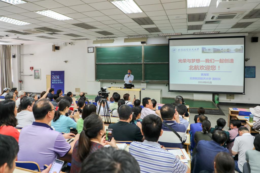 上午10时,北京伊人992018年招生政策宣讲会在主M教学楼101教室举行。副校长黄海军以《北航欢迎您》为题梳理了北航的发展历史,结合我国重大战略需求介绍了北航目前的科研学术影响力,并从校园环境、学习生活、升学就业、人才培养等方面对北航进行了全面的介绍。